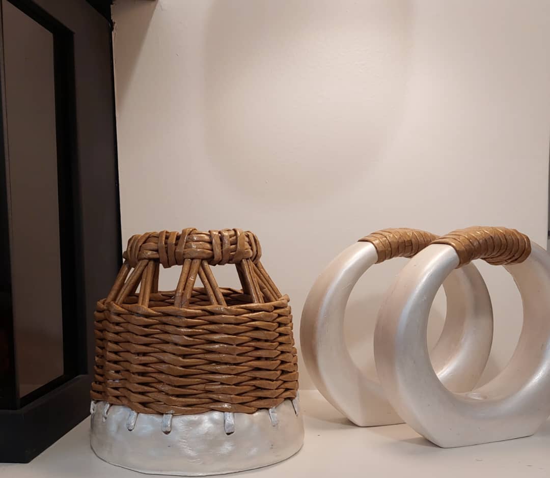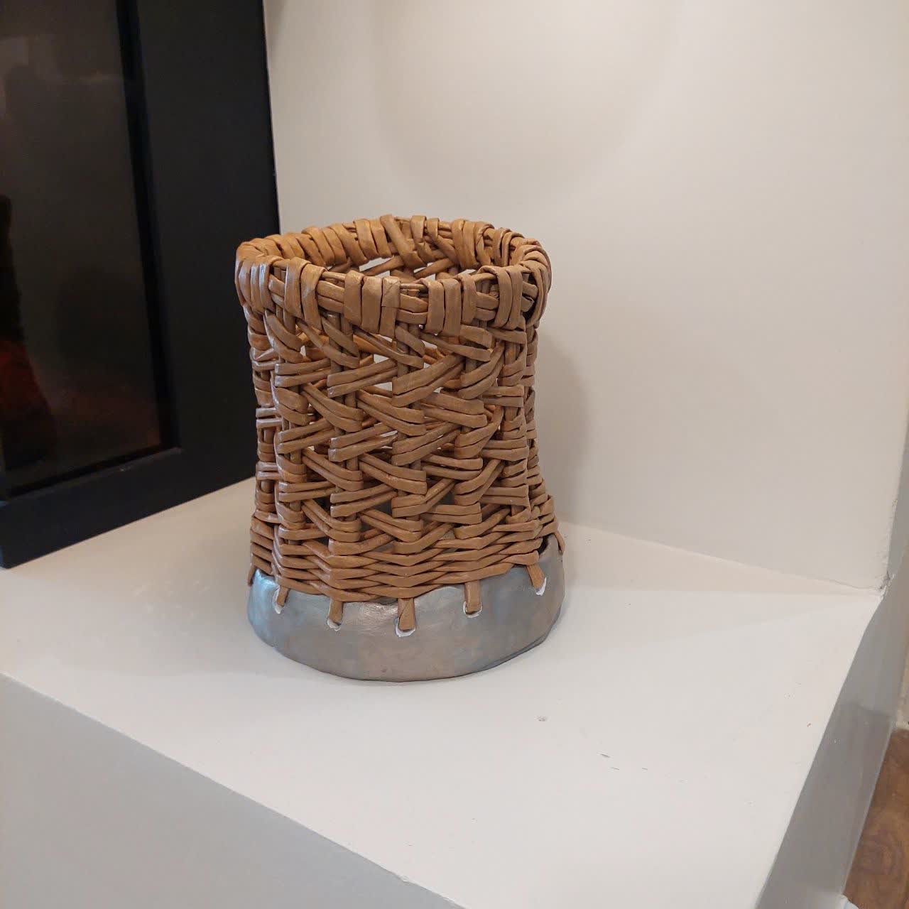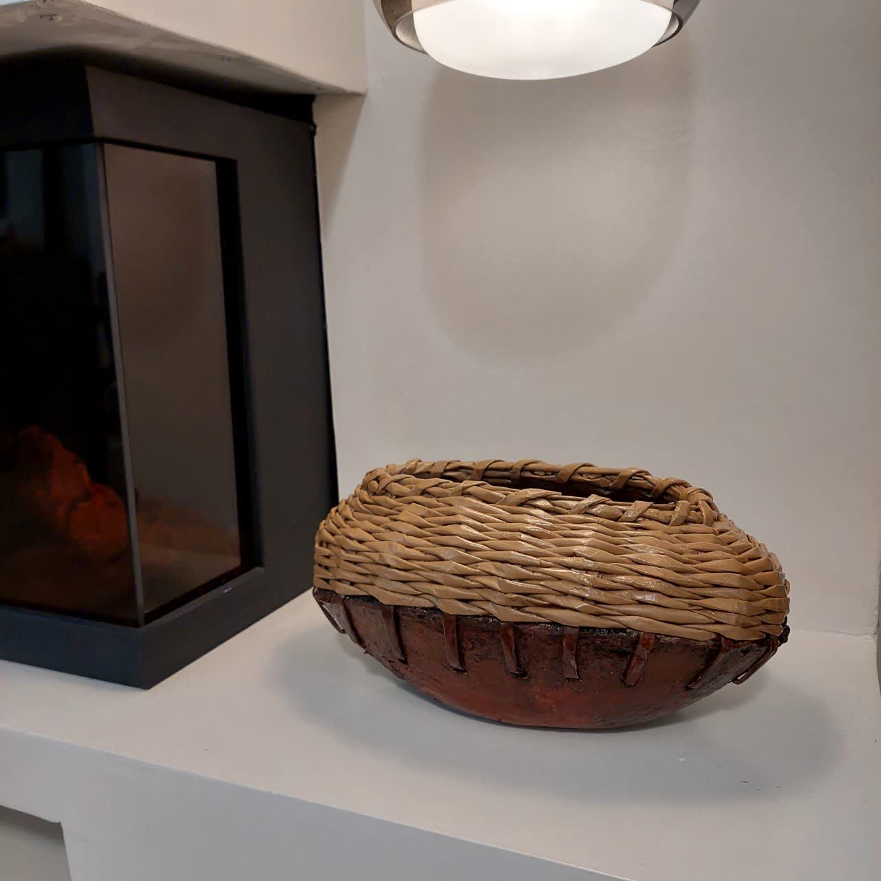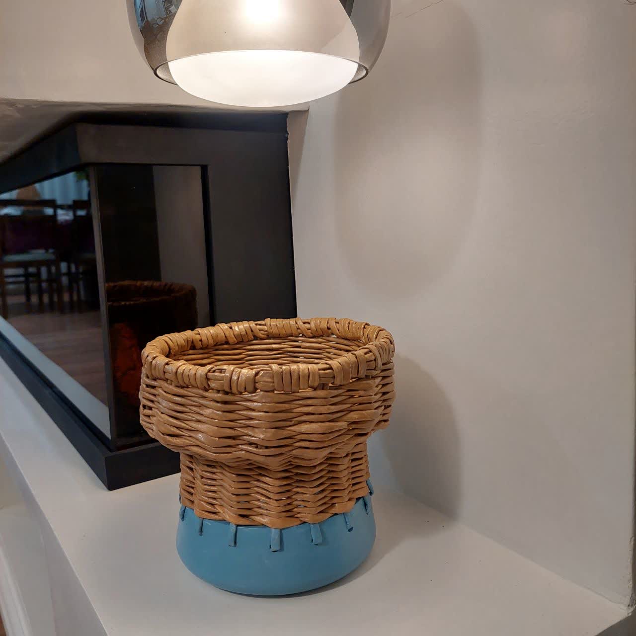 گلدان تلفیقی سفال و ویکربافی لبه دار