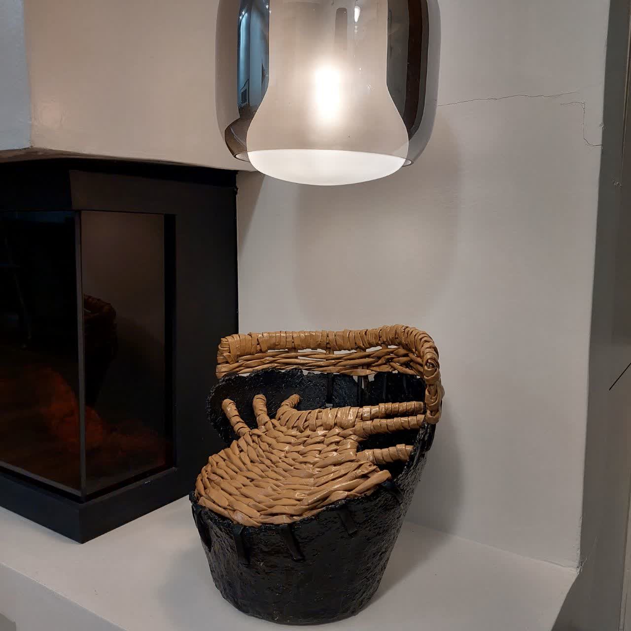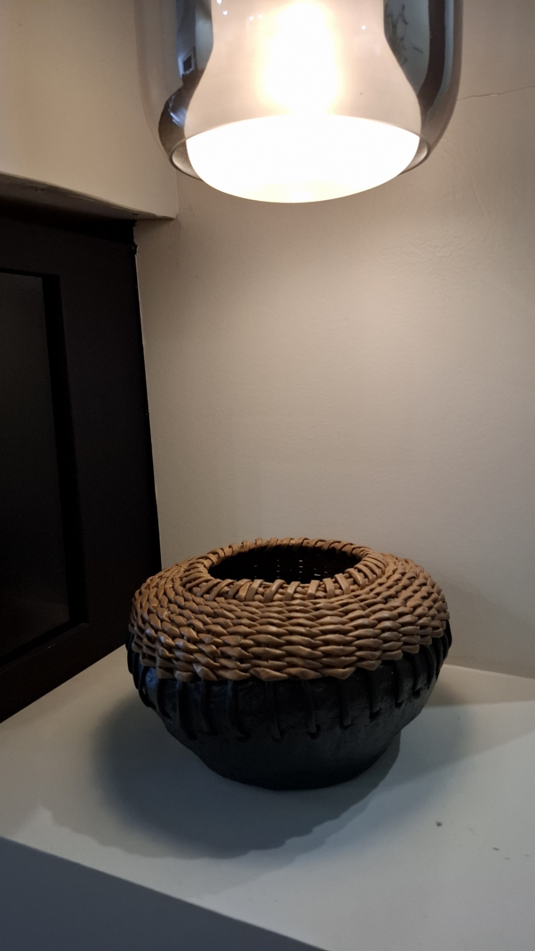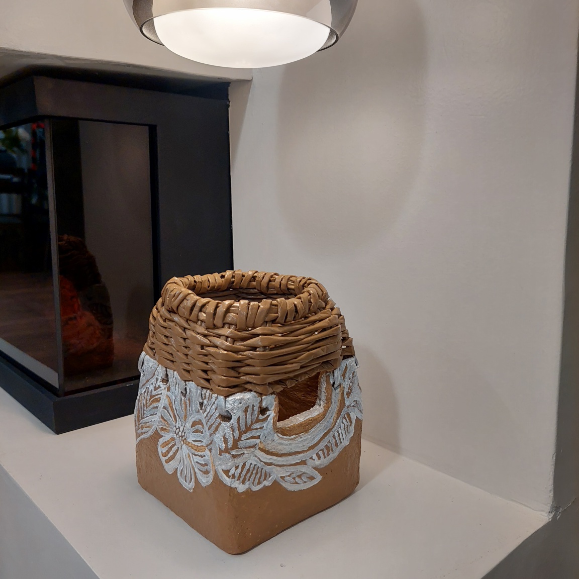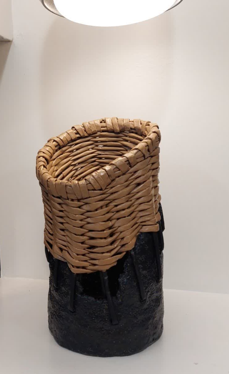گلدان تلفیقی سفال و ویکربافی لبه دار